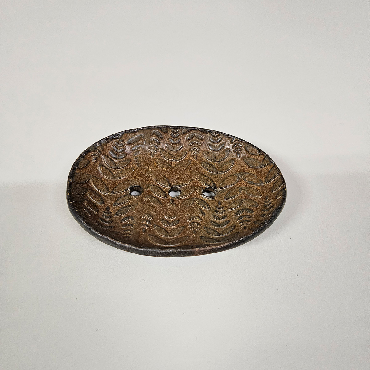 Ręcznie robiona mydelniczka kamionkowa. Wypalana w wysokich temperaturach, dzięki czemu szkliwienie jest trwałe i się nie ściera.